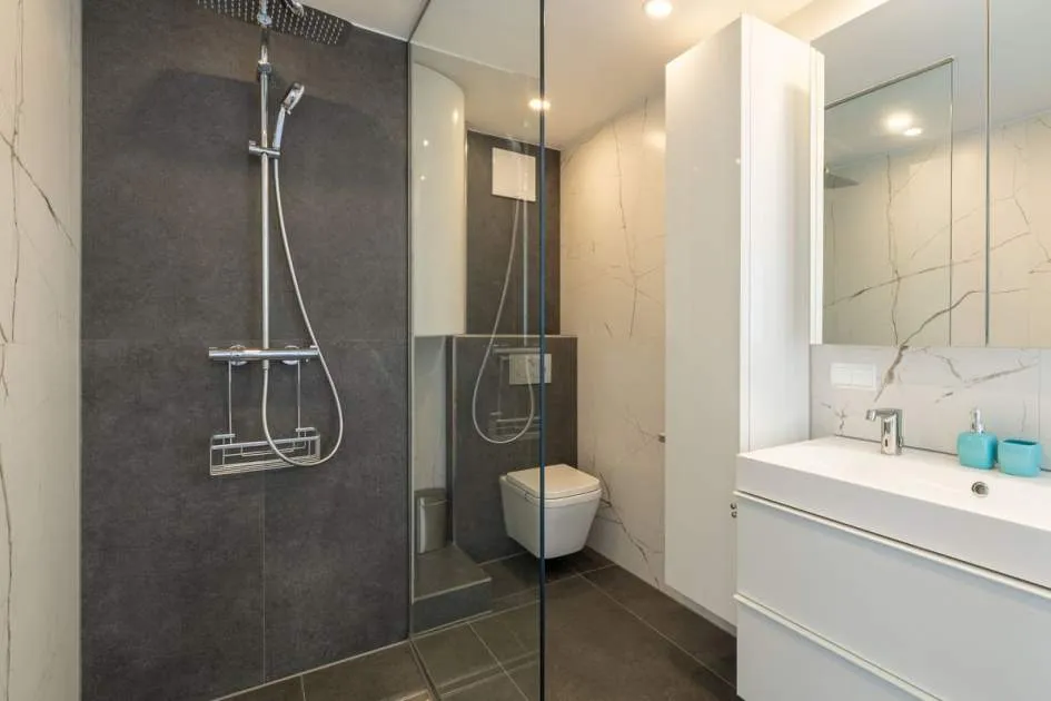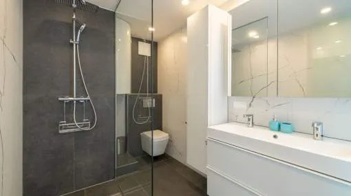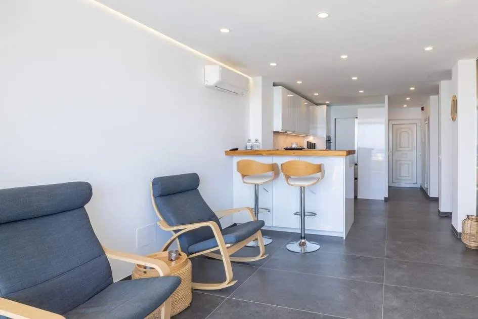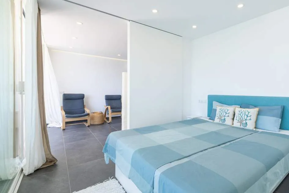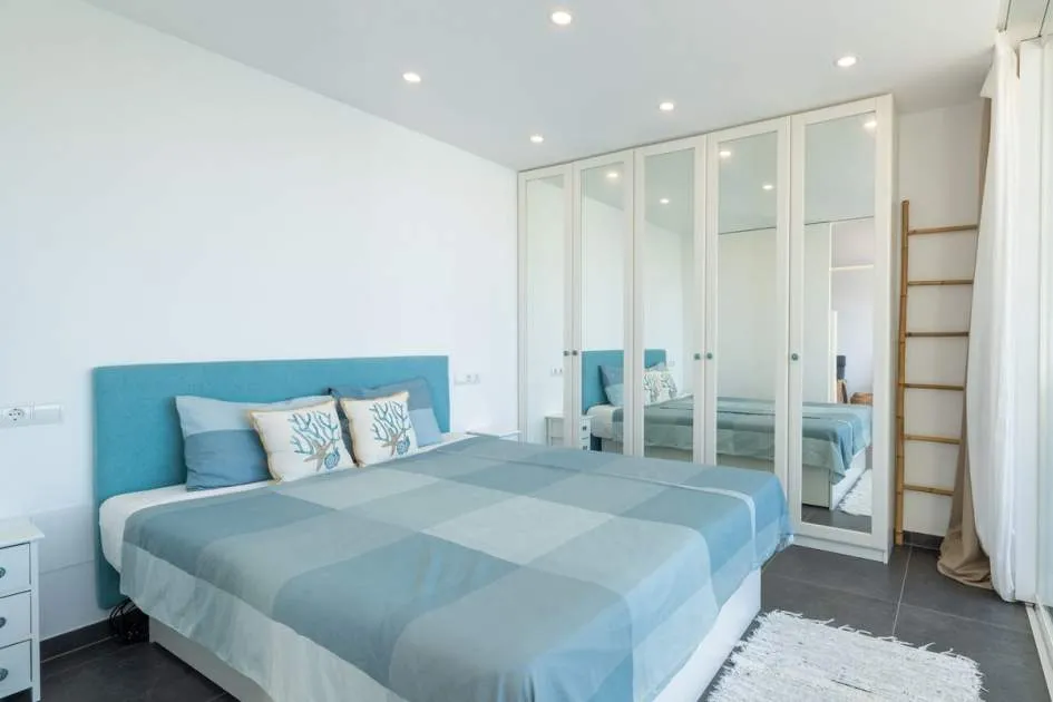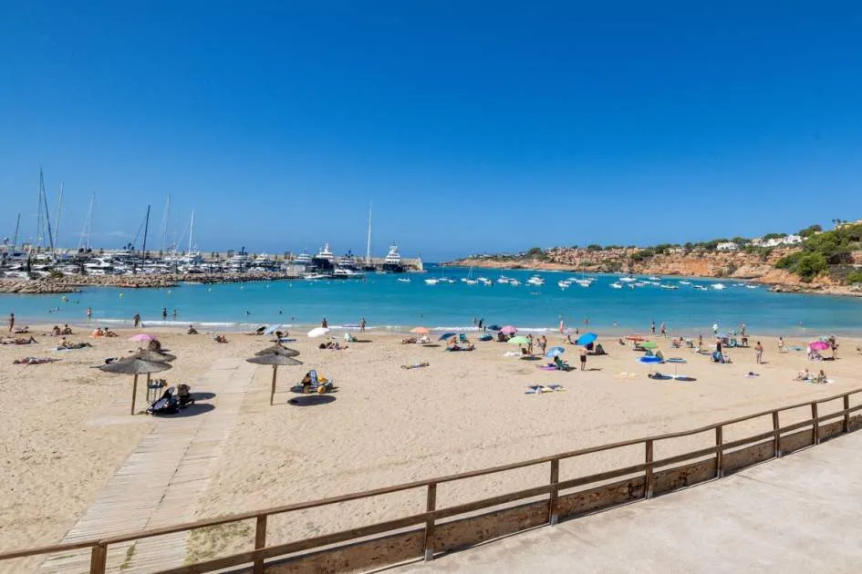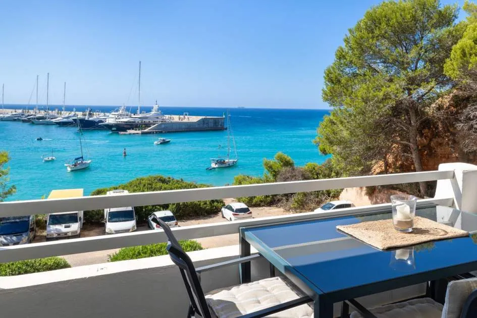 There is a spacious living and kitchen area, as well as two separate bedrooms. One of the bedrooms has direct sea view through a large glass door that can be opened completely. The living area and balcony offers the same impressive views of Port Adriano's harbour and beach.