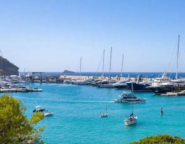 There is a spacious living and kitchen area, as well as two separate bedrooms. One of the bedrooms has direct sea view through a large glass door that can be opened completely. The living area and balcony offers the same impressive views of Port Adriano's harbour and beach.