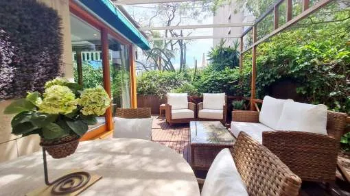 Living room: Very spacious, surrounded by a very good sized terrace. An inverter air conditioning unit guarantees pleasant temperatures in summer and warm in winter.
