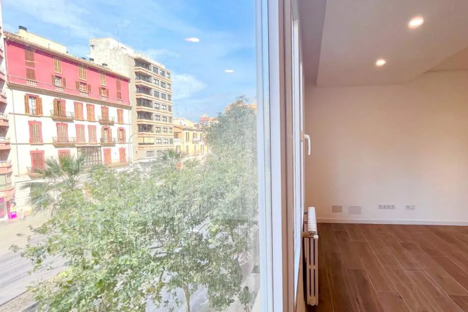 This bright and spacious apartment is located right in the heart of Palma de Mallorca, just a few minutes’ walk from the old town and surrounded by all essential services and public transport. An unbeatable location for those who want to live with all the conveniences of the city within easy reach. The property is rented for long-term stays and unfurnished, giving you the opportunity to decorate it to your taste and create the perfect atmosphere for your new home in Palma. The apartment was completely renovated in 2025 and features a comfortable and functional layout: a large, very bright living room, a separate kitchen equipped with new furniture and appliances, four bedrooms, two bathrooms, an additional interior room ideal as a dressing room or office, and two balconies. Highlights include new air conditioning units installed in all rooms (living room, kitchen, and bedrooms), central gas heating, and high-end windows with thermal and acoustic insulation, ensuring comfort all year round. The building has an elevator and access for people with reduced mobility! In addition, it has two underground parking spaces, both available optionally for €120/month. Ideal for those looking to live in one of the most practical and well-connected areas of Palma, enjoying the perfect balance of comfort, space, and modernity. Don’t miss this opportunity to move into a brand-new home in central Palma! Contact the First Mallorca team for more information or to arrange a viewing.