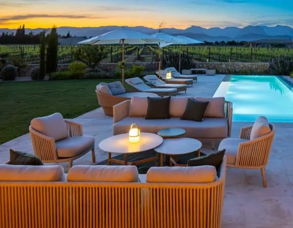 Contemporary fincas set within a vineyard between Binissalem and Sencelles, with open views to the Tramuntana mountains. Selected homes are currently available.