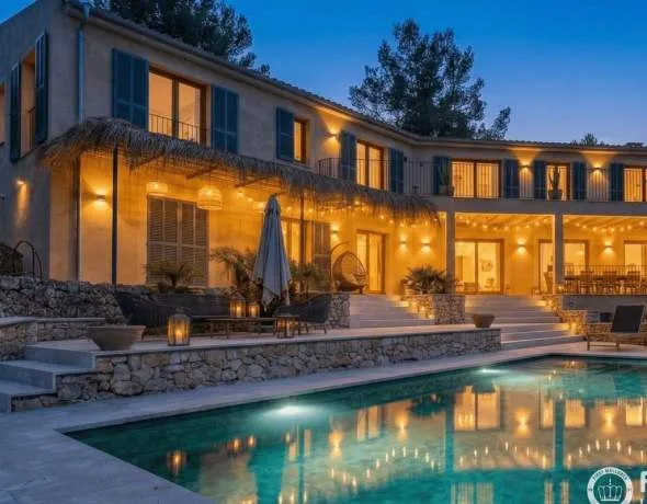 As night falls, the carefully designed ambient lighting based on warm lights, lanterns, and garlands transforms the facade and terraces into a magical and extremely welcoming setting. All this paradise is framed by mature pines and lush native vegetation that guarantees absolute privacy without sacrificing the beauty of the open surroundings. This finca represents an unparalleled real estate opportunity for those seeking a high-end residence, combining exclusivity, design, and nature in one of the most sought-after locations on the island.