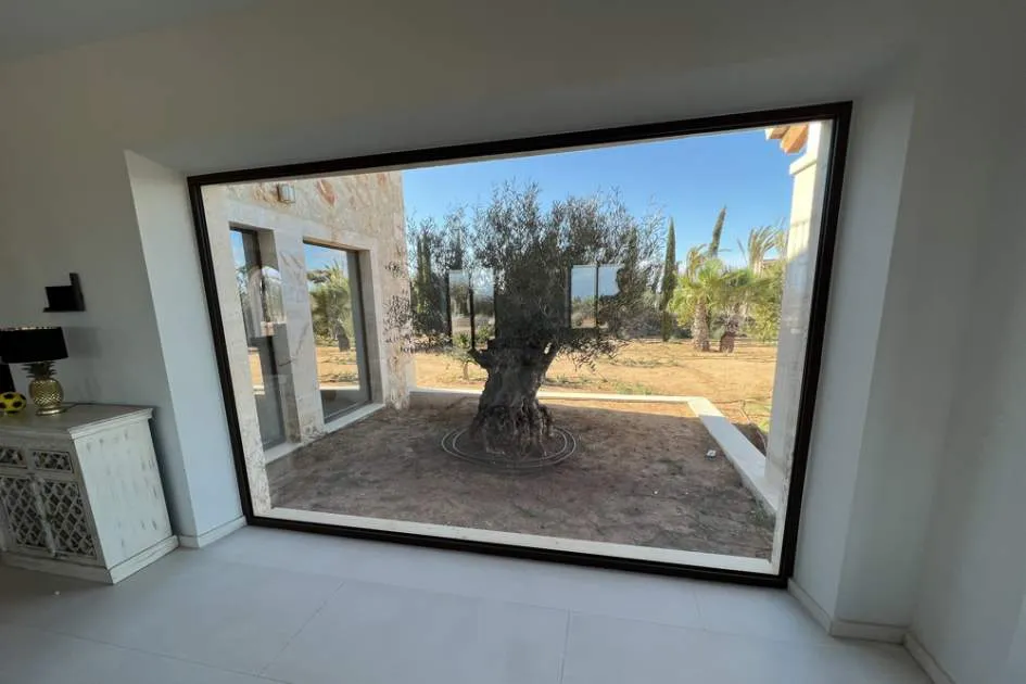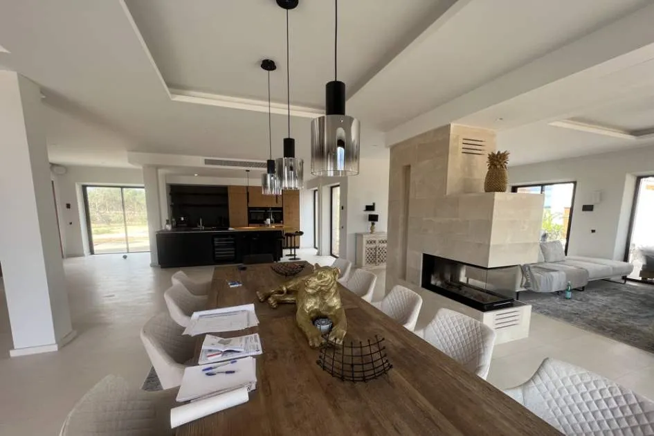 The luxurious finca has approx. 16.000m² of plot, 600m² of living area and 300m² in terraces and balconies. The house is fully furnished with modern and high quality finishings. There are 6 bedrooms with fitted wardrobes, Joop beds and en-suite bathrooms, including high quality duvets, bed linen and approx. 200 Vossen towels. There are 7 bathrooms in total with matt black Axor bathroom equipment, heating and custom-made marble washbasins. The designer kitchen is fully equipped with 2 dishwashers, 2 fridges, 2 ovens and 1 wine fridge. The house also has a laundry room with 2 washing machines and 2 dryers and an air-conditioned wine cellar for 400 bottles of wine.