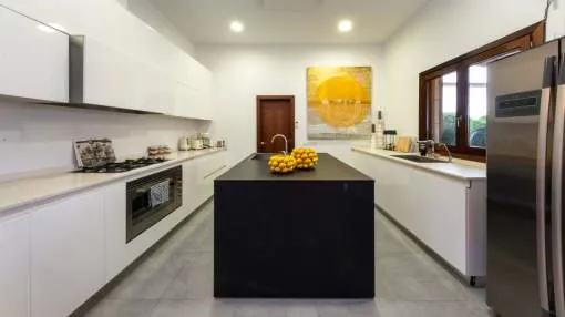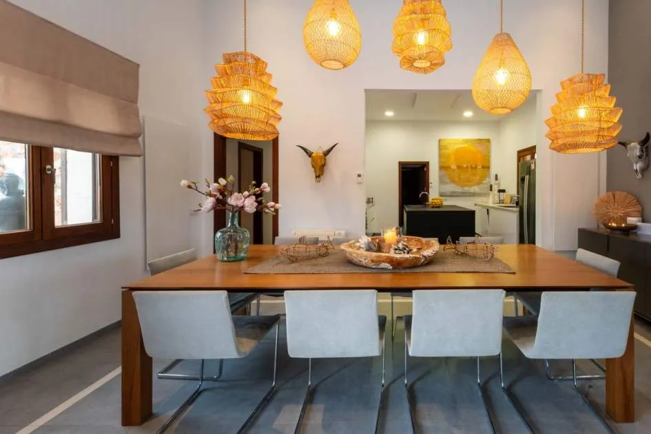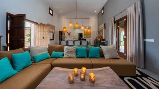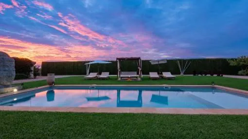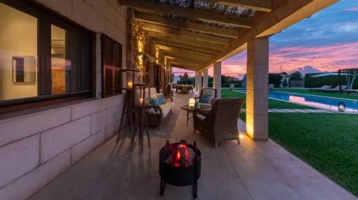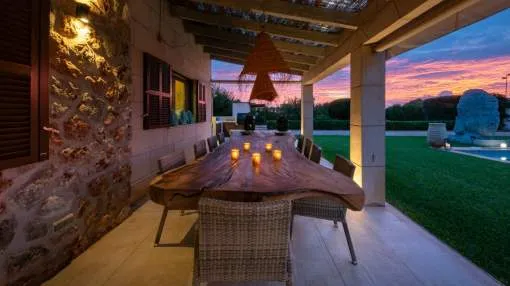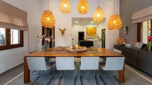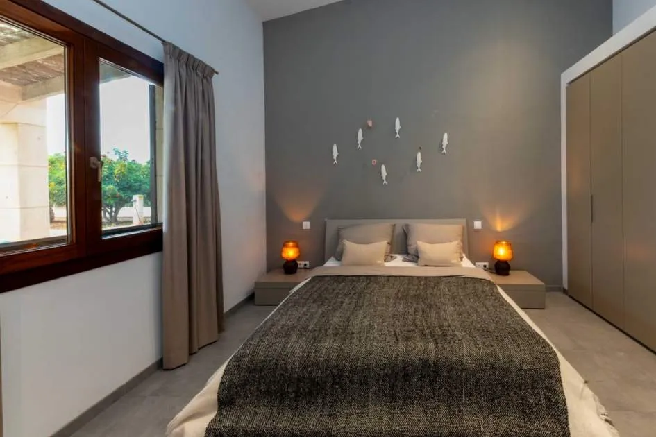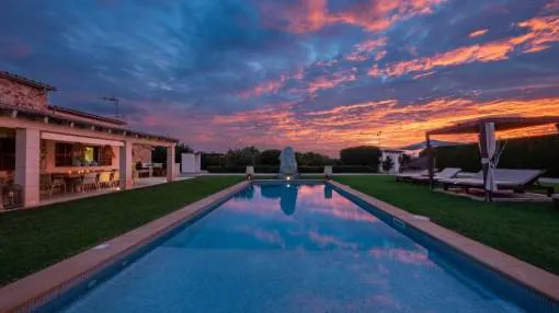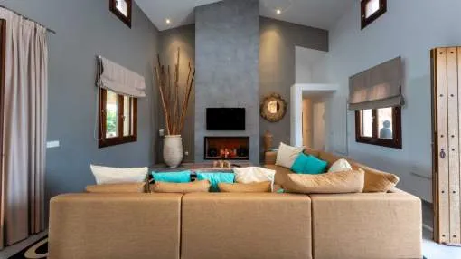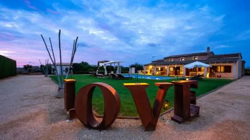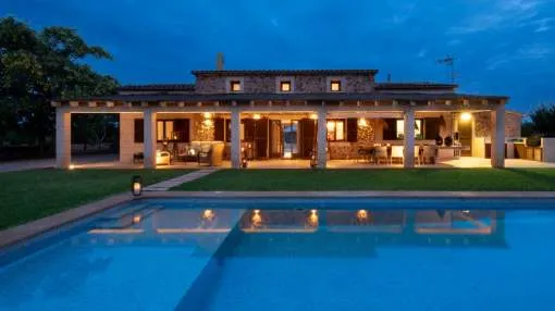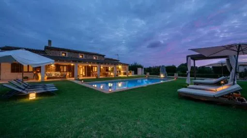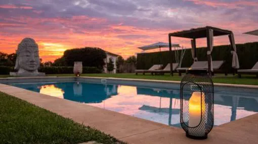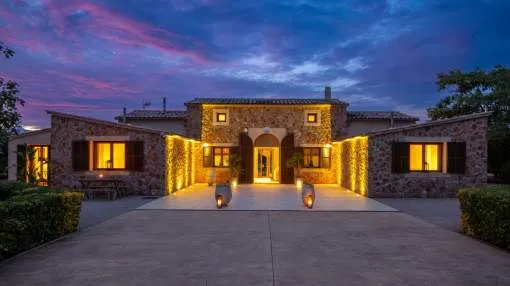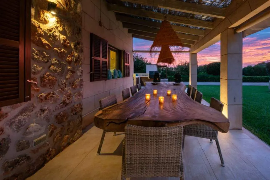 This incredible finca is located in the south of the island, only 10 minutes away from the stunning beach Es Trenc and its nature reserve. In full contact with nature, it offers privacy and tranquillity to its tenants and at the same time it is less than 10 minutes away from the town of Campos with all the essential services. Its unique design combines natural elements with modern art and decoration, adding oriental elements that give it an avant-garde touch. The villa is distributed in a spacious living-dining room with high ceilings and fireplace, a fully equipped kitchen with island, 4 spacious bedrooms with double beds and 2 bathrooms, with shower and bathtub. In addition, the house has a large swimming pool of 60sqm, and a carefully designed garden where you can enjoy the hottest days. The house has SONOS sound system installation, alarm system, satellite internet connection, air conditioning and electric heating powered by solar panels. For more information and viewings, please contact First Mallorca.