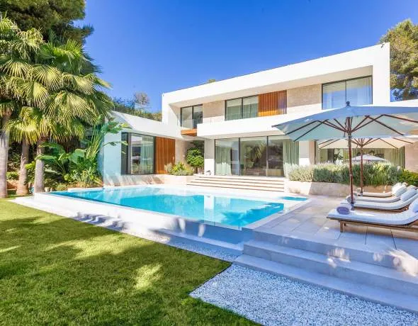 This exclusive newly built villa is in one of the most sought-after residential areas of Santa Ponsa, just a few minutes from the marina, fine sandy beaches, and several golf courses. The living area is distributed over two floors plus a separate technical area. Set on a 1.156 m² plot, the villa offers approximately 402 m² of living space bringing together modern luxury and Mediterranean elegance.