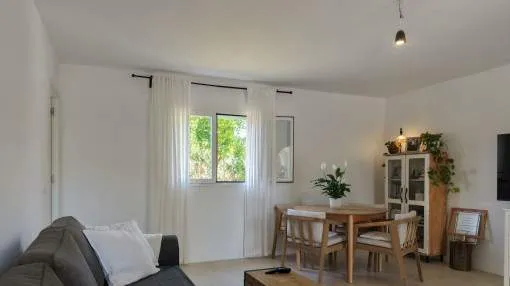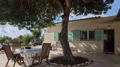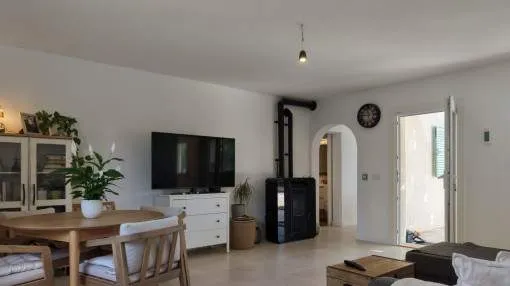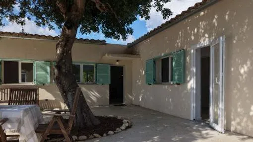 Details: Beautiful, High-Quality Renovated Finca in a Peaceful Location near Llucmajor This charming finca is situated in a quiet and idyllic area just a few minutes from Llucmajor. Set on a plot of approximately 1,862 m², the property offers around 105 m² of living space, combining traditional Mallorcan character with modern comfort and energy efficiency. The house was completely renovated in 2022 to a high German standard, with meticulous attention to detail. All four exterior walls are fully insulated, and a 7 cm SATE exterior insulation system, commonly used in Germany, ensures excellent energy performance and a pleasant indoor climate. Heating is provided by a powerful pellet stove with separate air channels that distribute warmth evenly throughout the house. Electricity is supplied by the property’s own 5 kW solar system, while water is stored in a cistern that is filled by truck as needed. A separate utility room with WC offers additional convenience. Outside, a spacious terrace shaded by mature trees invites you to relax and enjoy the peaceful surroundings. A 2.50 x 2.50 m water basin can easily be converted into a small plunge pool — perfect for cooling off on warm days and enhancing the Mediterranean charm of the garden. The location is tranquil yet very well connected: Llucmajor is only about 2 km away, the Palma Airport can be reached in approximately 10 minutes, and Palma city in about 20 minutes. There is also the option to purchase adjoining plots, offering even more space and privacy if desired. Returns from holiday lettings: For initial orientation you can use the “Porta Holiday Returns Calculator” without obligation to calculate your potential returns from holiday letting. NB: Due to the current legal situation it is possible that in certain municipalities renting restrictions may apply, or new touristic licences may not be granted. Your Porta Mallorquina real estate consultant will be pleased to advise you whether the property you have chosen is affected. Go to Returns Calculator. Location & surrounding area: In terms of surface area, Llucmajor is the largest municipal county on the island of Majorca and is located in the south. Its population amounts to 20,000 inhabitants. The small city includes 4 supermarkets, some well loved cafés and tapa-bars, and even a thrice-weekly fruit and vegetable market, taking place in the very recently renovated town centre, with its Plaza de España and the second largest church on the island. The picturesque hill-location of Randa on the mountain of the same name, which is the most elevated point in the island’s centre, houses three sanctuaries, and is located slightly north of the town. Llucmajor has developed into an economic and popular residential location, due to the new motor-way connection to Palma. The Marriott Son Antem Golf Resort and Spa, and nearby yacht clubs make Llucmajor an interesting and central location for planning pass-times and excursions. The Es Trenc natural beach, one of the nicest on the island and with a Caribbean similarity, lies just 15 car minutes from Llucmajor.