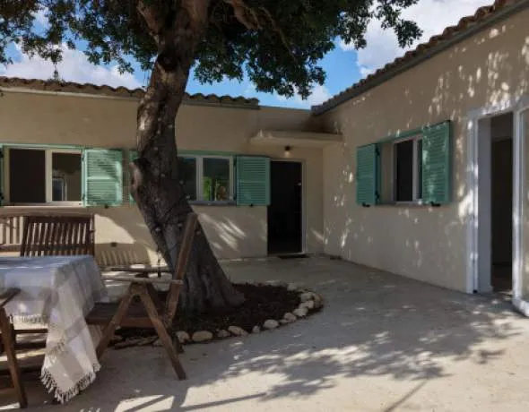 Outside, a spacious terrace shaded by mature trees invites you to relax and enjoy the peaceful surroundings. A 2.50 x 2.50 m water basin can easily be converted into a small plunge pool — perfect for cooling off on warm days and enhancing the Mediterranean charm of the garden.