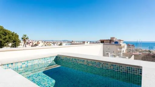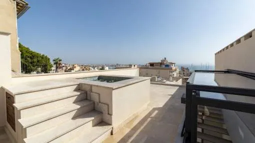 Show on mapTerraced house with private roof terrace, jacuzzi and sweeping views in Palma, El Terreno