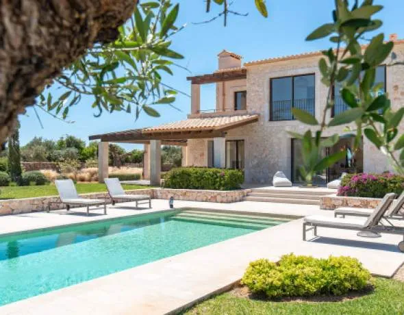 This dreamlike finca nestles in the middle of the Mediterranean countryside on a plot of approx. 14,330 sqm with wonderful sea views. The finca was built in 2022 using the highest quality materials. Traditional Mallorcan natural stone, attractive metal elements and modern design characterize this dream finca. The location of the finca is sensational. You can reach turquoise-blue bays, restaurants and shops in just a few minutes.