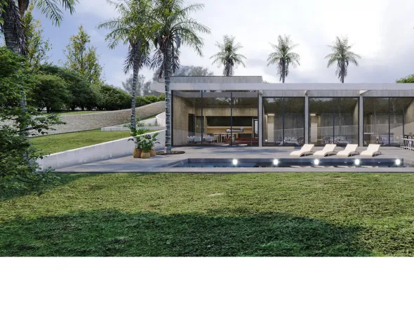 This urban plot of 2,109 m² is located in the Son Gual II development and comes with a project for the construction of a modern single-story villa. Designed to maximize natural light and views, the residence offers a clear separation between social and private areas, with generous outdoor spaces that include a large south-facing terrace and swimming pool.
