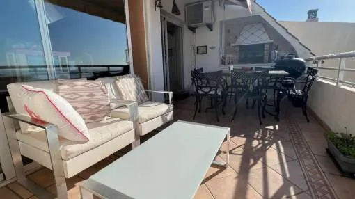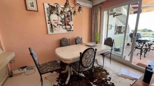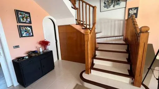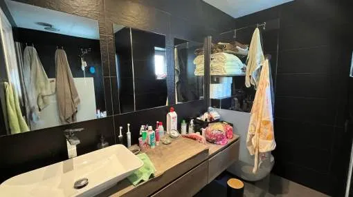 For sale is a well-located property in the quiet area of Cas Català, featuring 3 bedrooms and 3 bathrooms, one of them en suite, designed for comfort and functionality. All rooms enjoy sea views, bringing natural light and a relaxed atmosphere throughout the home.