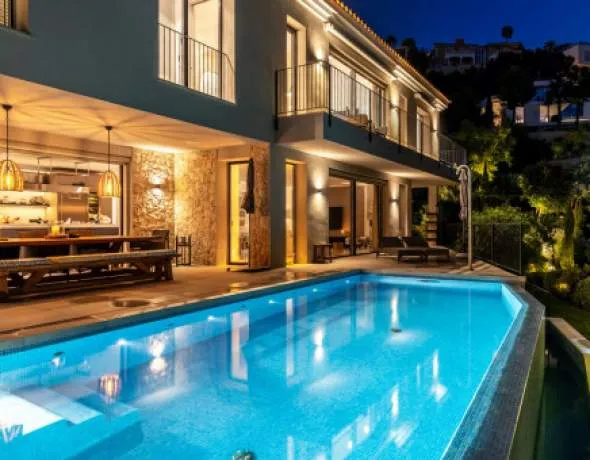This impressive, newly-built villa awaits in Costa d'en Blanes in the south-west of the island, one of Mallorca's most desirable residential areas, It is surrounded by a wonderful landscape, and enjoys convenient access to exclusive restaurants, high-quality shops, and the best beaches on the island.