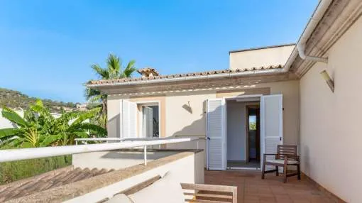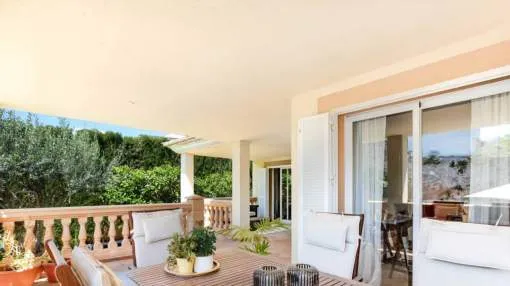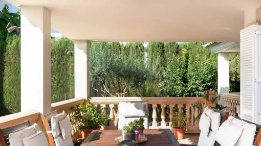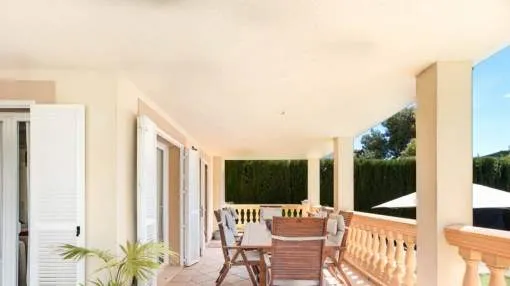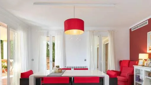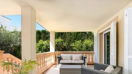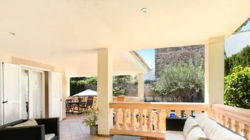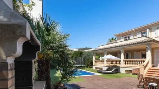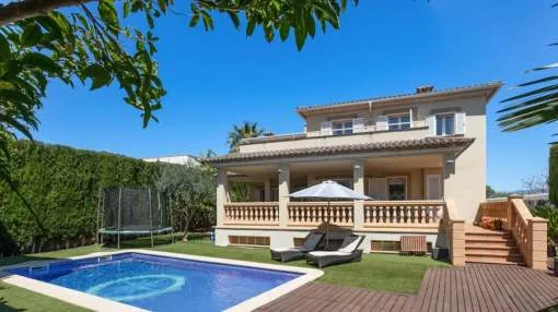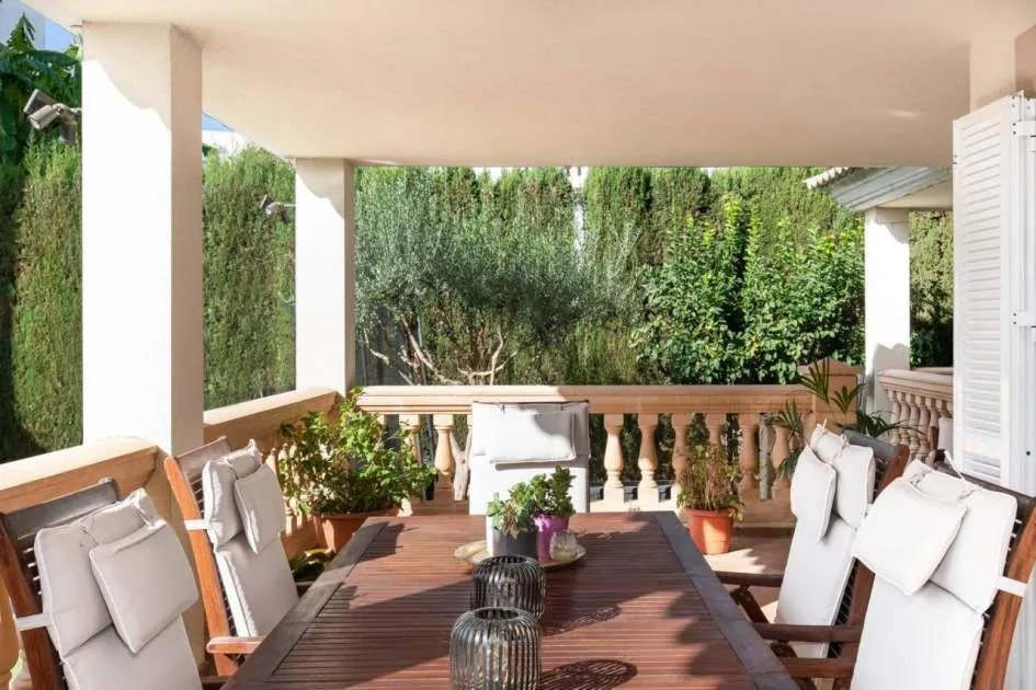 In the urbanisation Son Puig, very close to several golf courses, stands this fantastic villa with garden and swimming pool. 578m² plot. On the ground floor there is the living-dining room, kitchen, one bedroom, one bathroom and several terraces. On the first floor there are three bedrooms with terrace and two bathrooms. In the basement we find a large playroom and a garage with space for three vehicles.
