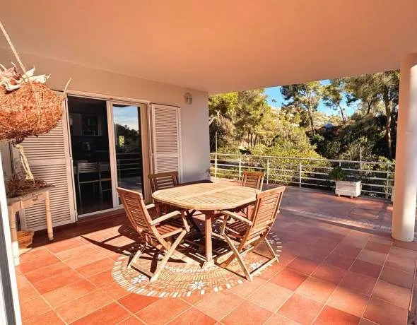 Outdoor areas include a terrace and a balcony, perfect for enjoying the Mediterranean climate and the peaceful surroundings. The property also includes a garage space in the price and a storage room, offering additional comfort and storage space.