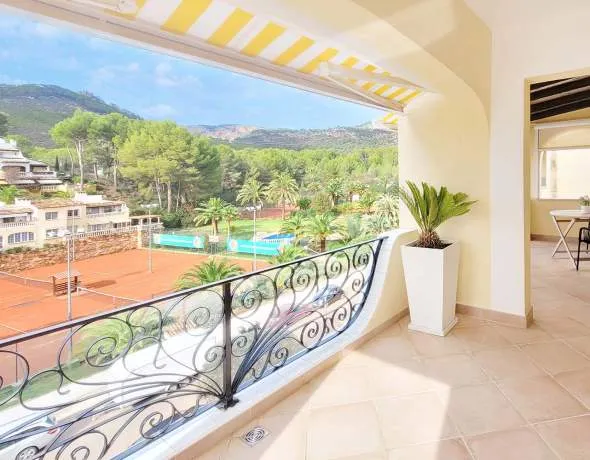 This beautiful, Mediterranean apartment is located near the tennis courts of Paguera. The well-known boulevard of Paguera with shopping facilities, cafés and restaurants is within easy reach, as are the sandy beaches of the town. The apartment has been completely renovated and has a bright living/dining area with an open kitchen and a covered terrace with beautiful mountain and panoramic views. A parking space on the property is part of the offer.
