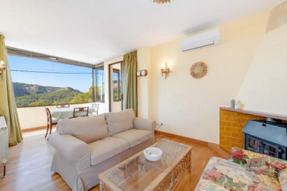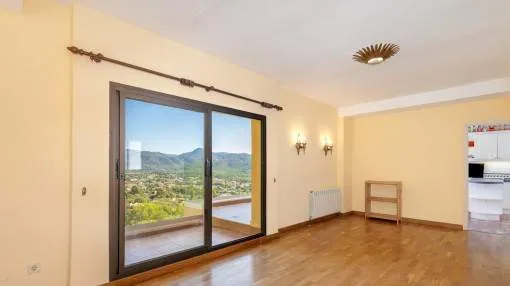 Details: Hidden among rolling hills and lush nature, this unique property is located in the picturesque village of Es Capdellà. Very close to Puerto de Andratx, Palma Nova and the stunning southwest coast of Mallorca, this charming place combines tranquility, authenticity and Mediterranean lifestyle. The unparalleled 360-degree view stretches from the imposing mountain peaks, through the vibrant green of the surrounding forests, to the picturesque village and the glittering bay of Camp de Mar and Paguera. This extraordinary setting invites you to stop on the terraces and enjoy the moment. The property is in need of a comprehensive renovation, but its multiple design possibilities, spacious outdoor areas and inspiring panoramic and sea views offer exceptional potential for developing creative ideas and realizing personal living dreams. With a living area of 214.45 sqm, the property has 4 bedrooms and 3 bathrooms, 2 of them en suite. The kitchen is fully equipped. The living-dining room stands out for its abundant natural light and views of the bay. Returns from holiday lettings: For initial orientation you can use the “Porta Holiday Returns Calculator” without obligation to calculate your potential returns from holiday letting. NB: Due to the current legal situation it is possible that in certain municipalities renting restrictions may apply, or new touristic licences may not be granted. Your Porta Mallorquina real estate consultant will be pleased to advise you whether the property you have chosen is affected. Go to Returns Calculator. Location & surrounding area: Es Capdella is a small village with 1000 inhabitants which belongs to the municipality of Calvia. It is situated at the foot of the Tramuntana mountains, 115 metres above sea level with views as far as the Puig de Galatzo (1027 metres high). It was founded in the 17th. Century and has retained the charm of times gone by. Due to its special location Es Capdella has remained an insider tip where individualists, principally Germans and English, have recognised what the village and the surrounding area have to offer and have settled here. The bars Nou and Es Moli should also be mentioned, two central venues in the village offering Mallorcan cuisine and very popular with tourists. Scenically particularly lovely are mountain routes from Capdella to Puigpunyent via Galilea, and to Andratx and Peguera. Es Capdella is situatedonly 6 – 8 km. From the coast, where long sandy beaches and beautiful bays invite to bathe A large choice of activities are available together with a very good infrastructure. Palma can be reached within approx.15 minutes, and the airport is only 20 – 25 minutes away.